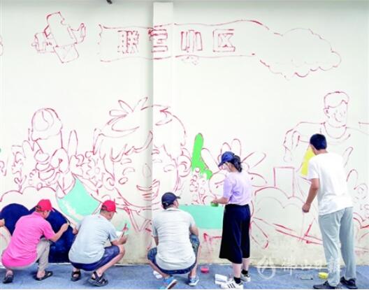 联运小区居民正在墙绘。/佛山日报记者任志耀摄
