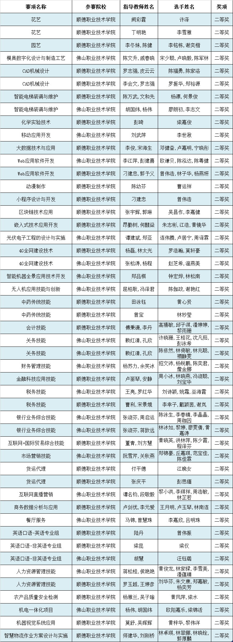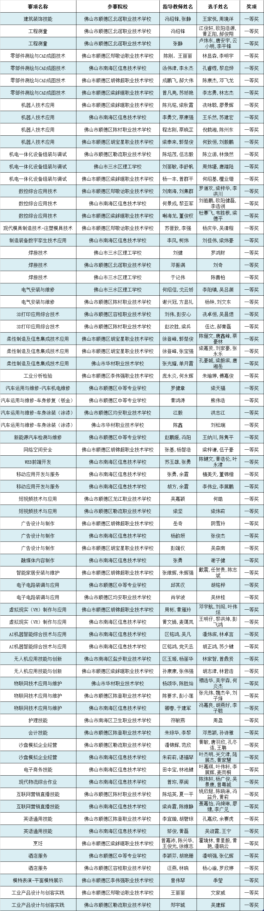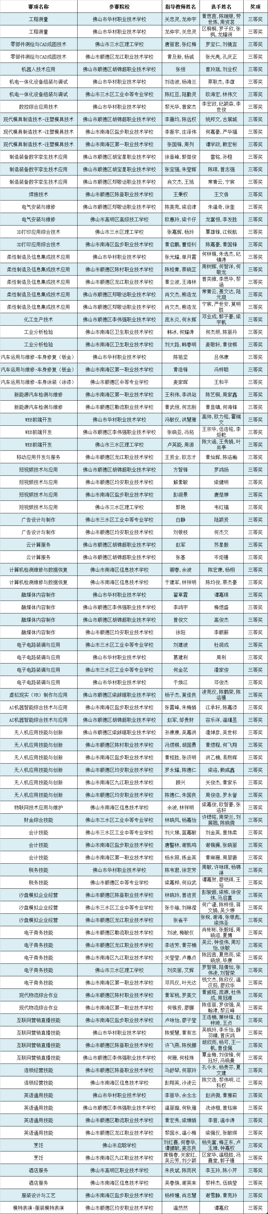 2020-2021年度广东省职业院校学生专业技能大赛获奖名单公布。在中职组方面,佛山24所参赛学校共揽下282个奖项,包括一等奖73个,二等奖113个,三等奖96个。