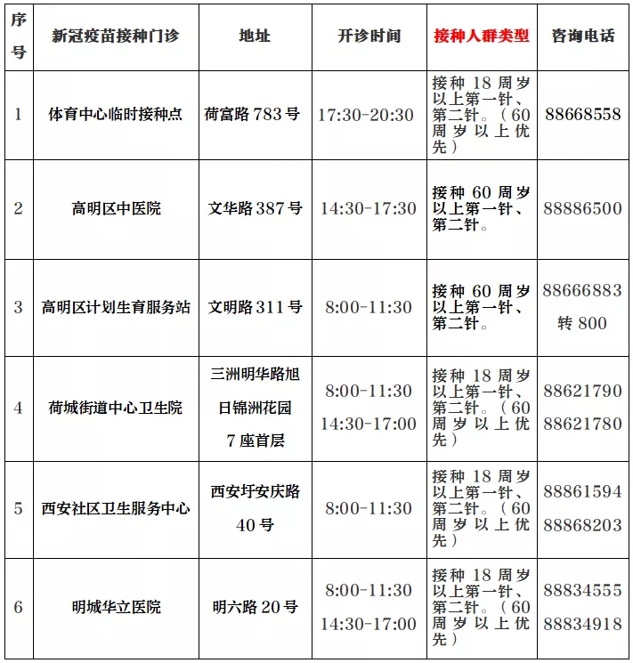 请市民仔细阅读各接种点接种人群类型,分人群、分时间到各接种点进行接种。
