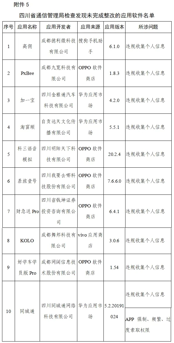 依据《网络安全法》《电信条例》《电信和互联网用户个人信息保护规定》等法律法规,按照《关于开展纵深推进APP侵害用户权益专项整治行动的通知》(工信部信管函〔2020〕164号)工作部署,工信部近期组织第三方检测机构针对用户反映问题较多的医疗健康、电子商务、实用工具等类型手机应用软件进行了专项检查,已通知相关企业进行了整改。截至目前,尚有71款APP未完成整改。各通信管理局按我部APP整治行动部署,积极开展手机应用软件监督检查,辽宁省、浙江省、广东省、四川省、宁夏回族自治区通信管理局检查发现仍有74款APP未完成整改。上述145款APP应在7月26日前完成整改落实工作,逾期不整改的,工信部将依法依规组织开展相关处置工作。
