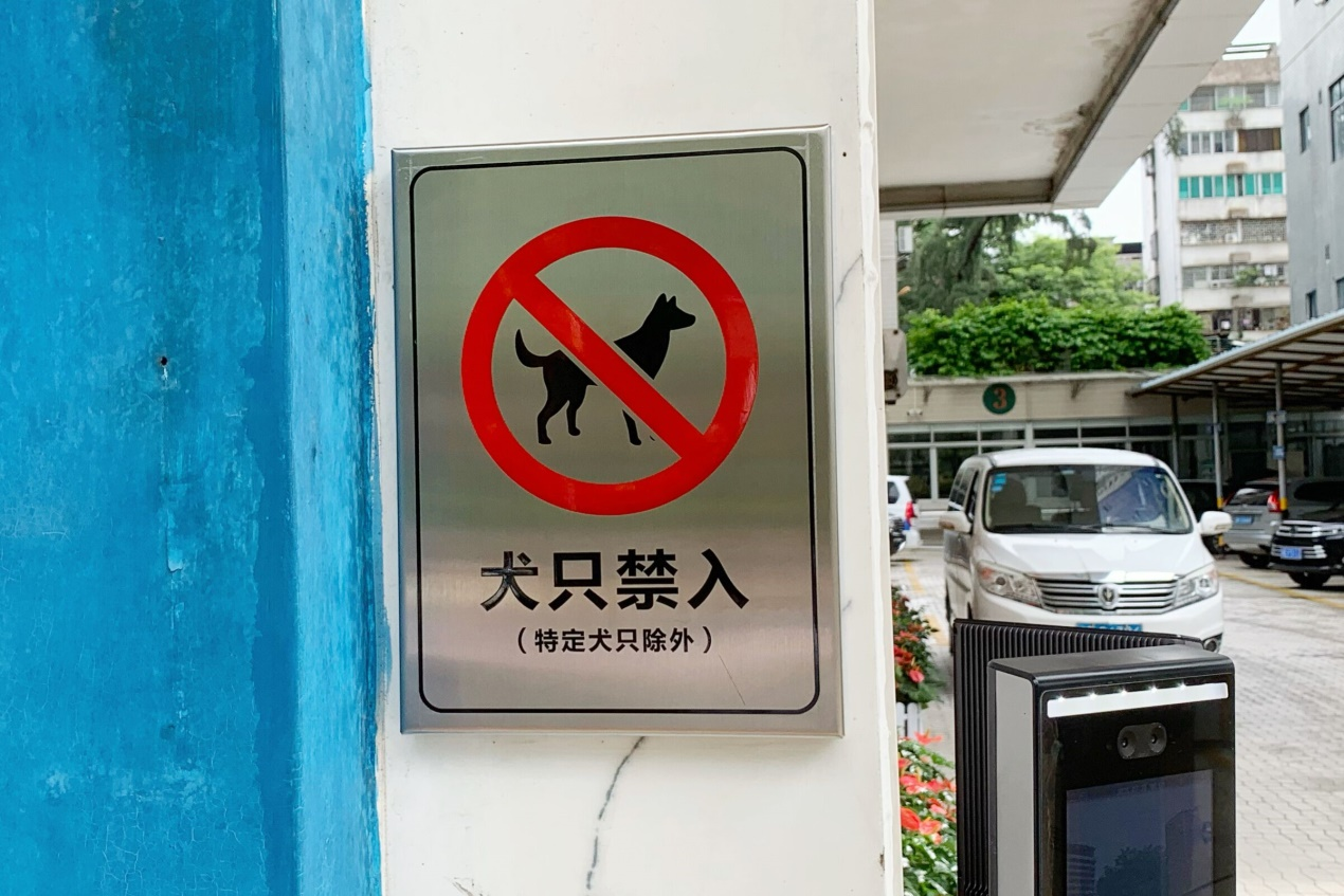 记者从禅城区城市管理和综合执法局获悉,《佛山市养犬管理条例》(以下简称《条例》)于去年5月正式实施,其中第二十三条关于“禁止犬只进入的区域或者场所,应当设置明显的禁入标识”的规定,明确对重点公共场所设置“犬只禁入”标识。