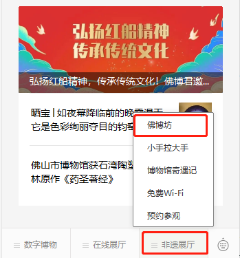 报名者可关注“佛山市博物馆”微信公众号,点击公众号菜单栏“非遗展厅”→“佛博坊”进入报名页面,并填写报名信息。