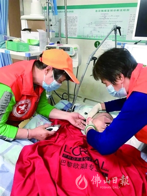 三水区好人联合会义剪队进医院服务病人。/三水区好人联合会供图