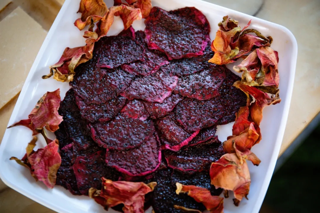 烘干的火龙果干可直接食用,也可作为原料制茶。佛山新闻网林蔚坚摄