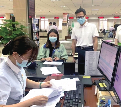 佛山新闻网讯 珠江时报记者方婷 通讯员张海燕报道:7月22日,为推动“我为群众办实事”活动走深走实,了解掌握参保群众办事难点、痛点、堵点问题,南海区社保局局长李仁声、副局长符灿亨带队到里水镇行政服务中心开展“领导干部走流程”活动。他们以普通市民的身份,从咨询、受理、办理、反馈、查询等环节,通过“窗口办”“终端办”“网上办”等方式,全链条开展“走流程”,实地体验社保政策和便民举措的落实情况。