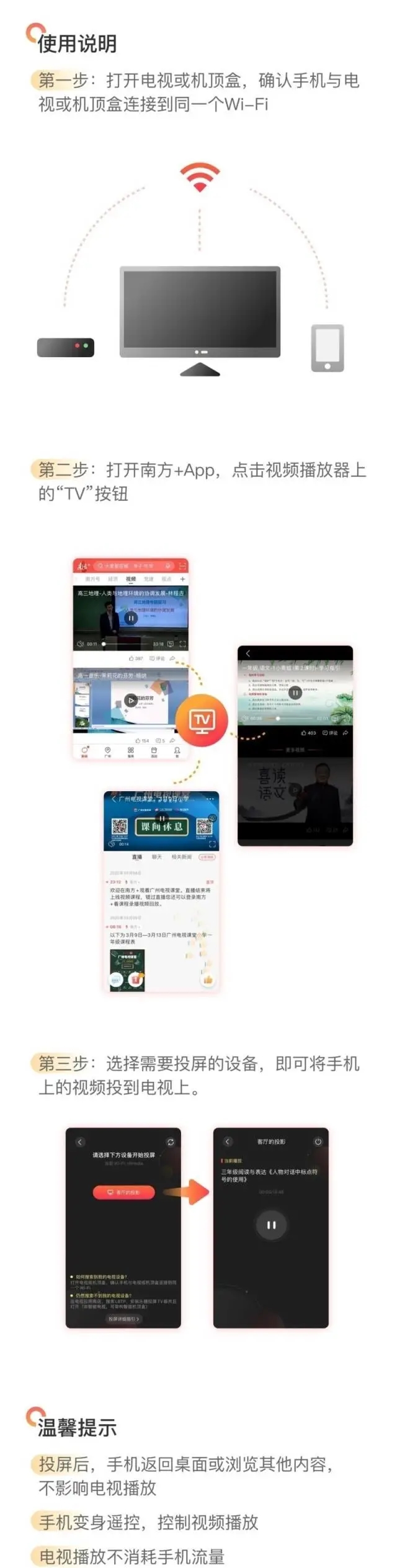 【温馨提示】 南方+视频直播支持电视投屏。您可以下载南方+客户端,根据下图指引进行操作就可以在电视大屏上收看本次安全课啦!