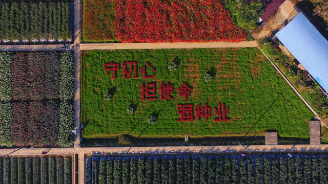 用一品红和黄菊打造的“三农”字体形象独特。用玉米粒设计的艺术墙,表达了农业科技工作者守初心、担使命的担当精神!