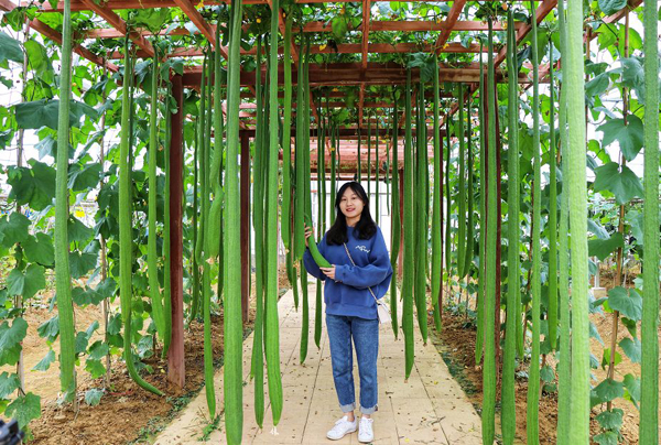 瓜届“超模”丝瓜,身高2米5,挂满了温室大棚。
