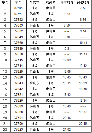 明日(12月3日)起至12月29日,佛山西站到珠海站之间增加11对列车。