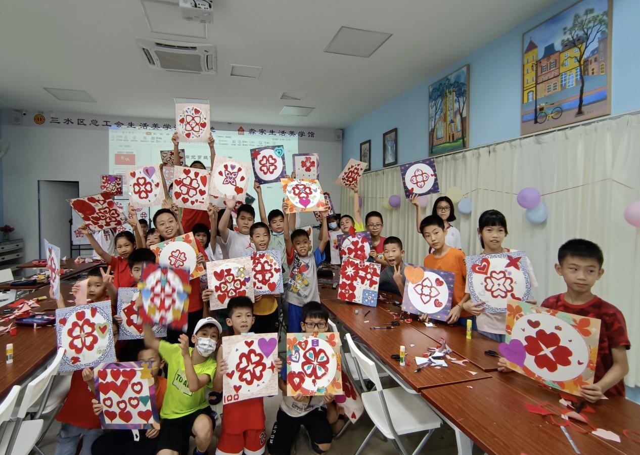 今年是建党100周年,暑期夏令营活动围绕“童心向党·快乐佛山”主题,融合佛山以及当地文化特色,活动分两期开展,每期7天,有70名职工子女参与,7月19日活动正式开始,夏令营开设了小主持艺术培训、剪纸、基础书法、安全教育、爱国教育、咏春学习、少儿财商学习、浮雕手作、木版拓印画、丙烯点彩画创作等富有趣味性、科学性和实效性的课程活动,还安排了一天的外出农业研学课程。