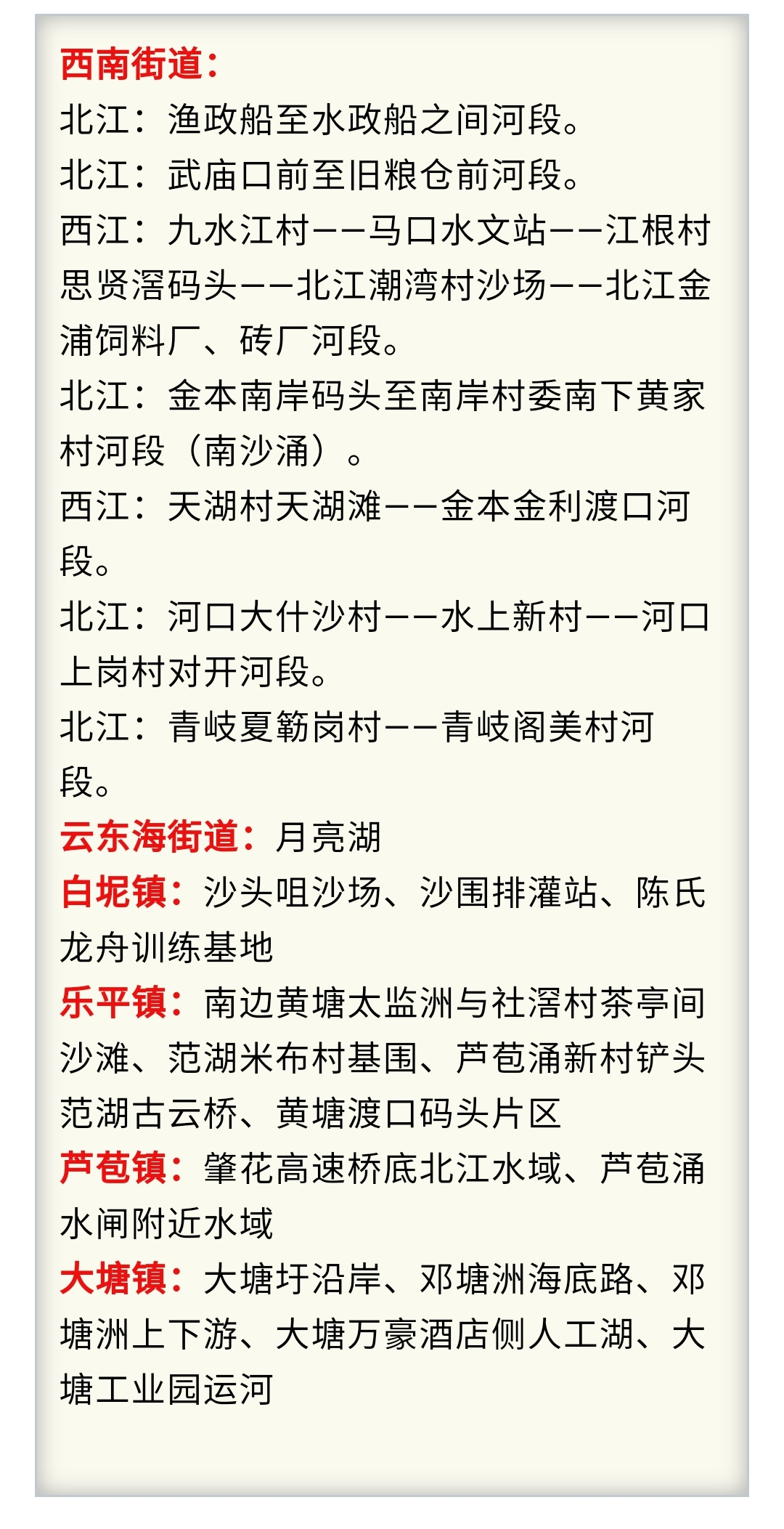 同时,公安部门对野泳点进行摸排,梳理出23个野泳黑点。针对这些分布在全区各镇街的黑点,三水均安排警力值守劝阻,在溺水警情的高发时段加强巡查力度。巡查期间,配备相应急救设备,也会使用扬声器劝导群众。发现有野泳情况,及时劝离。