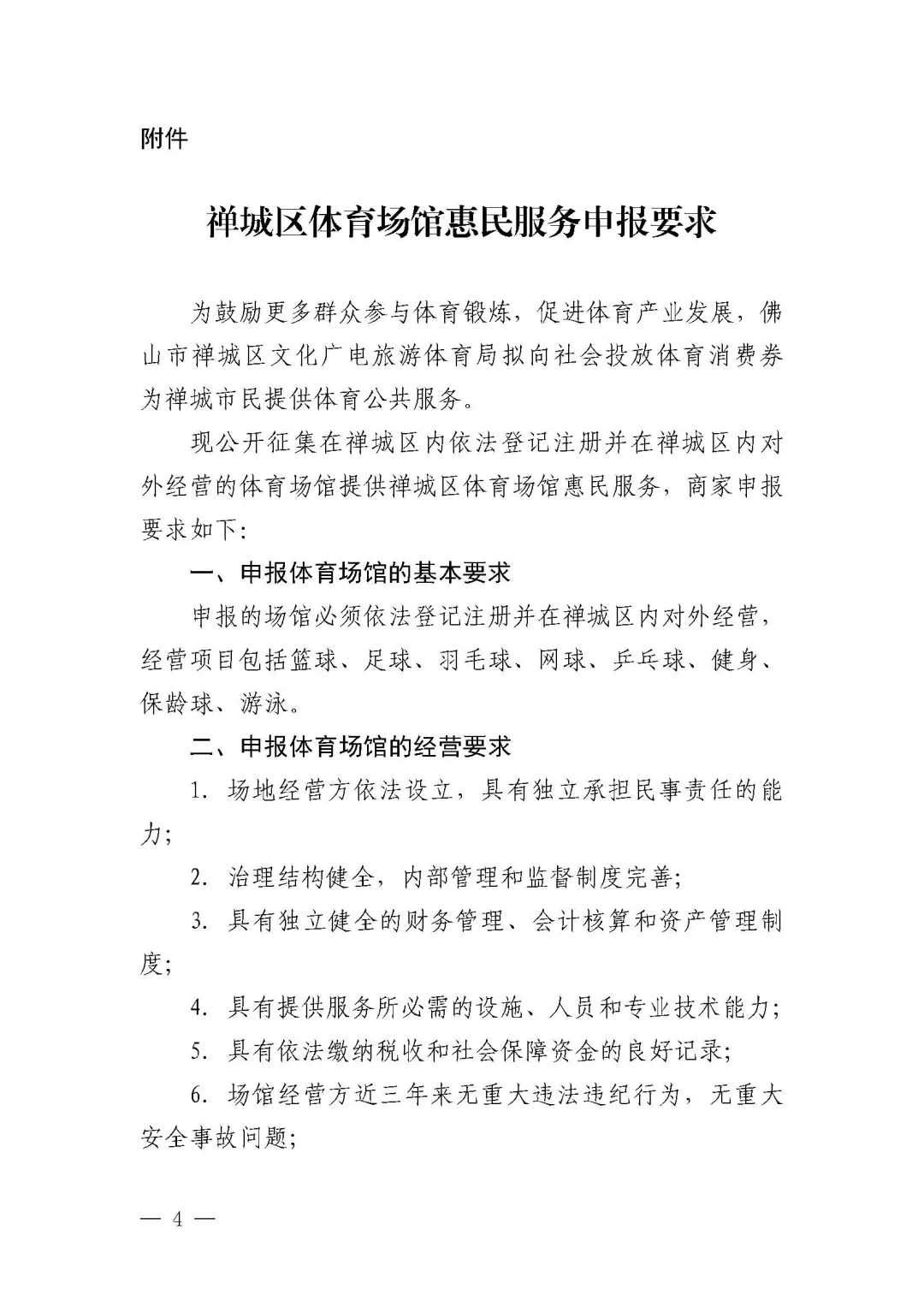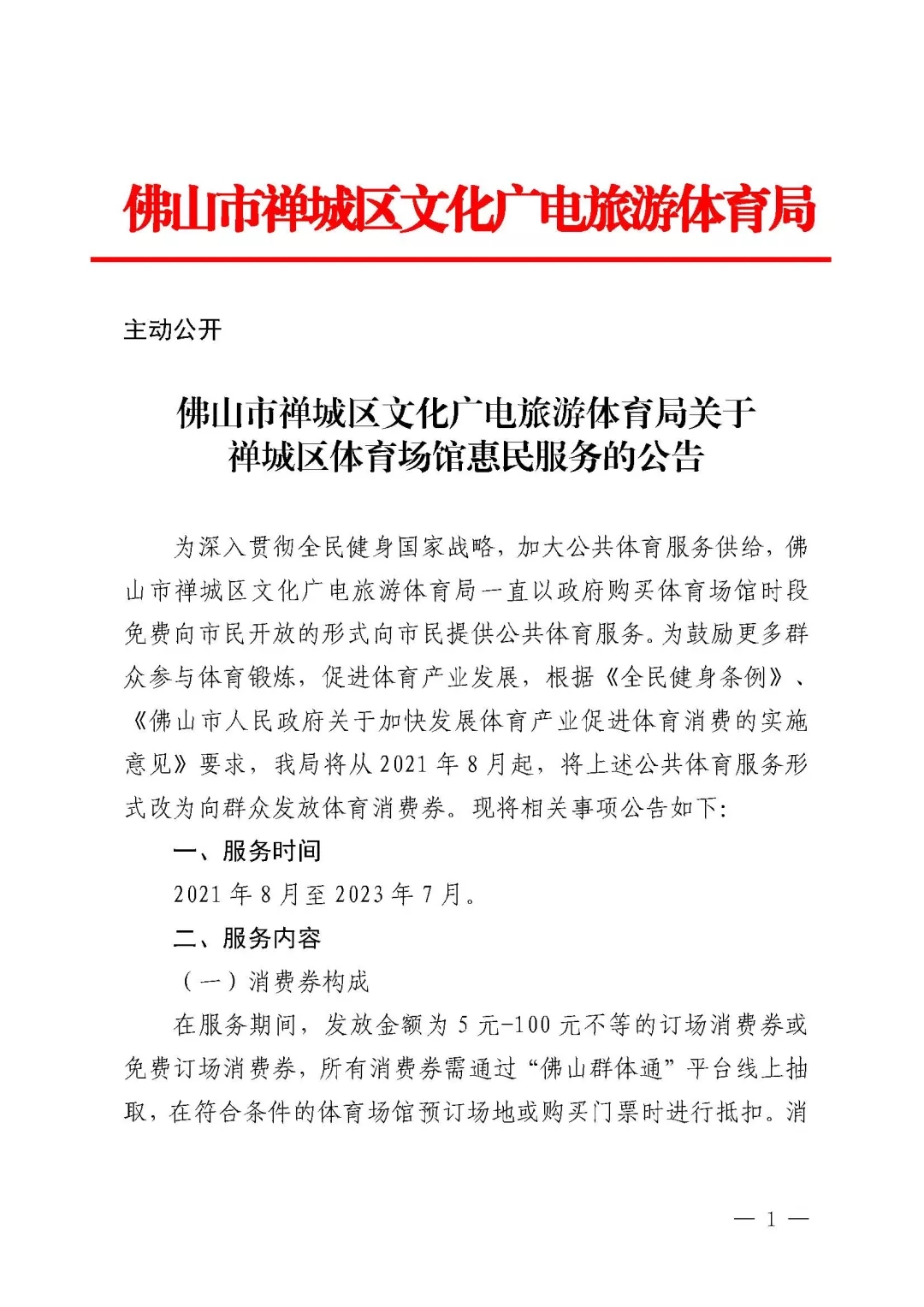 为更好地鼓励群众健身,同时促进体育消费,禅城区文化广电旅游体育局计划从2021年8月起,将改为向群众发放体育消费券的形式,推动全民健身活动开展,促进体育产业发展。