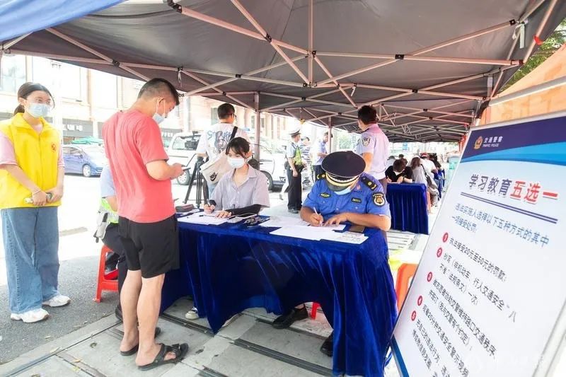 “本次整治行动,我们给了市民‘五选一’自由选择处罚方式的机会。”交警朱沛霖介绍,这五种处罚方式包括:接受罚款;抄写涉电动自行车、行人交通安全规章;做志愿者协助维持交通秩序,并签订交通安全约定书;观看交通安全警示视频;将自己交通违法行为发生的时间、地点,附上自己当志愿者的照片发上微博或微信朋友圈,求好友点赞并到达20人次。