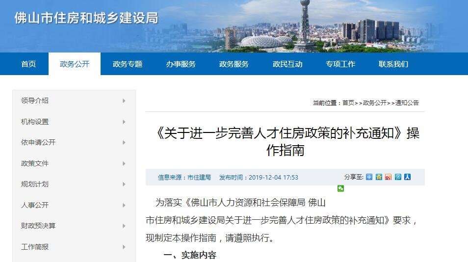 为落实《佛山市人力资源和社会保障局佛山市住房和城乡建设局关于进一步完善人才住房政策的补充通知》要求,现制定本操作指南,请遵照执行。