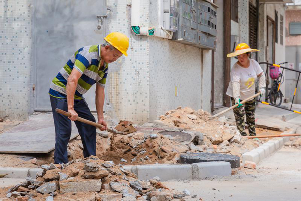 7月31日,位于沙头社区涌南小区,施工人员正紧张施工,重新规划人行道路,铺设燃气管道,让1000多户家庭用上燃气。该工程相关负责人说,三水投资3000多万元改造涌南小区,主要涉及道路规划、环境提升以及燃气管道入户等工程,整体提升小区软、硬件居住环境。