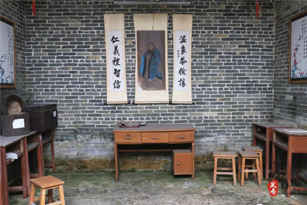 据介绍,学堂和书屋排在每行村屋的首位,这是村民的必经之地。学堂和书屋排列布局就像一个简写的“书”字,前辈们希望村民有文化,生意顺利。