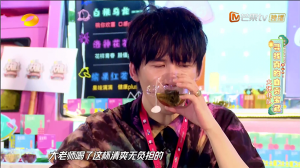 在大张伟老师进入安全屋复活队员之际,通过其与配茶师的频繁互动,金尘茶反复植入“好喝好闻、时尚好看、纯天然0添加、年轻人喜欢的味道”等产品亮点,通过热门综艺与明星主持的叠加效应,为金尘茶吸附海量的粉丝流量,将“一杯金尘茶,0压好时光”的品牌主张根植进消费者的内心!
