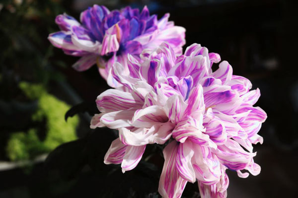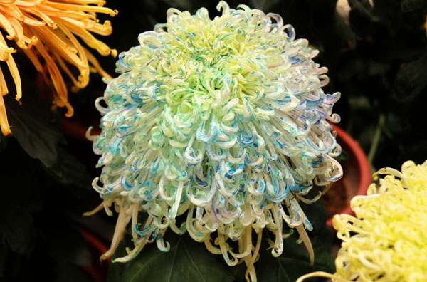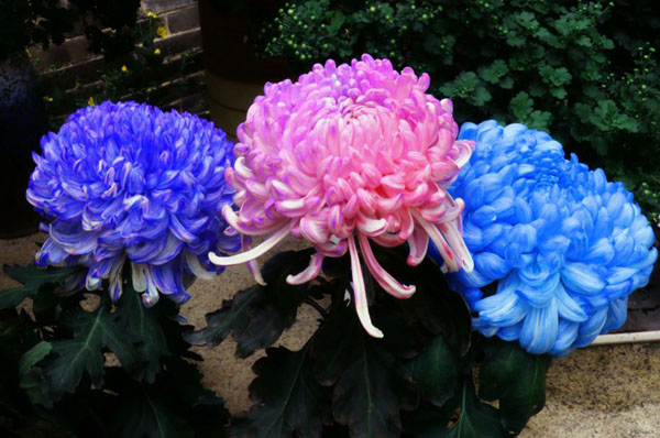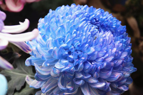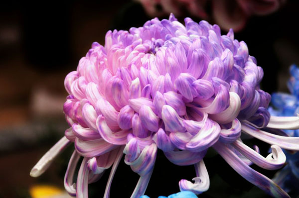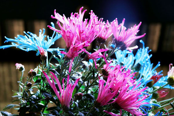 负责本次菊花展的花农冯永良表示,“出彩菊花”使用了特殊的栽培工艺,能够使菊花呈现蓝色、紫色、粉色等多种颜色,色彩鲜艳,极具视觉效果。