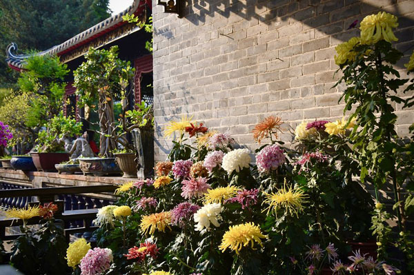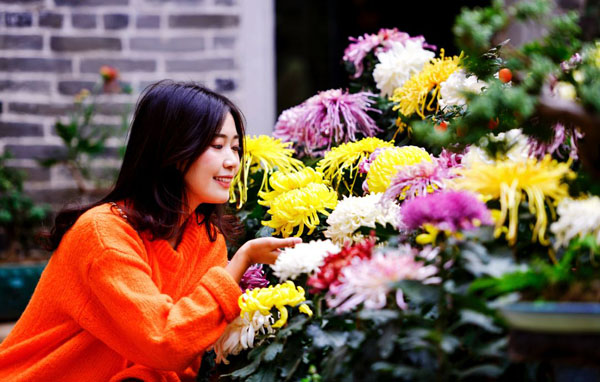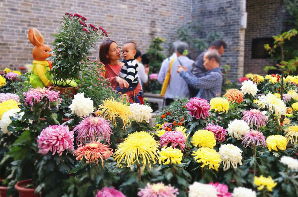 满园盛放的七彩菊花,与苏氏书塾传统岭南风格的锅耳山墙、青砖灰瓦、石磨板砖,配合得天衣无缝,相得益彰,成为禅城区文化休闲的好去处。