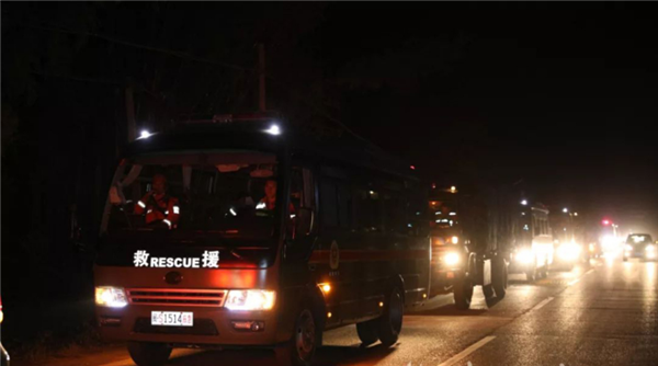 福建森林消防总队派出500名消防官兵前来支援,第二梯队正在经过松柏村。