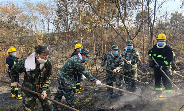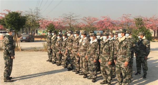 佛山市禅城区人武部在接到佛山军分区指示后,立即启动应急预案,迅速集结170名民兵,带好灭火装备、油锯等材,并于下午赶到高明扑火现场,配合施救。