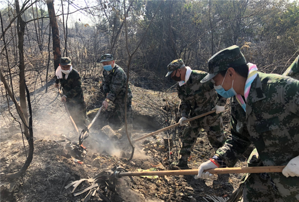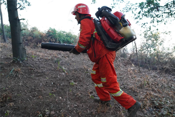 佛山禅城消防战士在盈香生态园附近树林内紧张地作业,他们不但需要扑灭明火,还需要打扫清理火场内的杂物,以防止死灰复燃。
