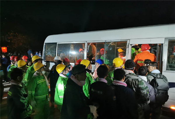 一直坚持奋战的消防战士们,抓紧仅有的休息时间补充体力。