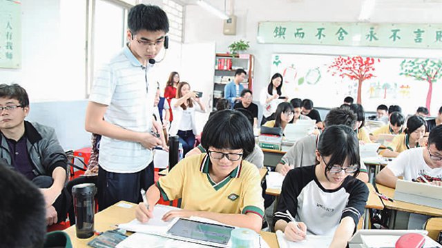 石门中学智慧课堂。(资料图片) 珠江时报记者/刘贝娜摄