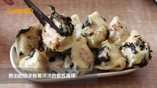 这道紫苏香味的饺子以猪肉、洋葱、萝卜干为馅煎得时候加入紫苏让紫苏包裹着饺子煎出的味道有着淡淡的紫苏香味