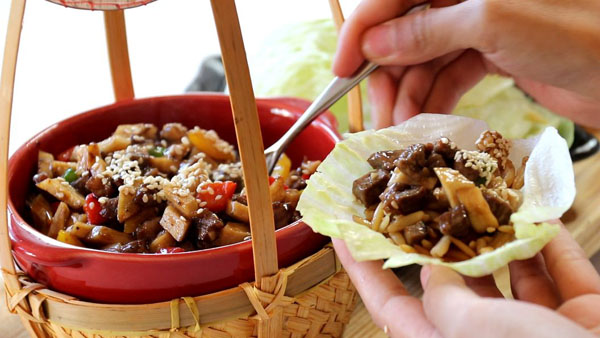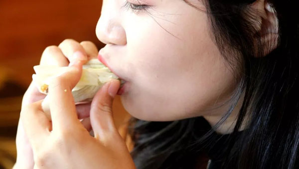 一包一卷,一勺牛肉,一勺米饭全都收入“囊中”。
