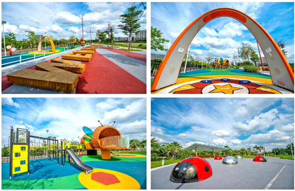 星光游乐园以儿童趣味设施为主,有专门为儿童设置的趣味滑梯、趣味攀爬墙、洞洞墙等。除此之外,在游乐场的南侧还建设了兼具观赏性和实用性的亲水木平台和以文翰湖英文名为形状的座椅,让家长也能有休憩的地方,同时满足家庭的亲子互动需求。