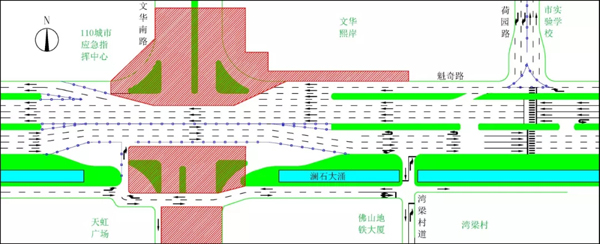 3.封闭魁奇路在荷园路口处的东、西2个掉头口,魁奇路—文华路口东西两侧分别增设东往东方向和西往西方向调头口。