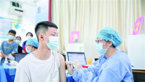 医护人员为12-17周岁人群接种新冠疫苗。/佛山日报记者洪海摄