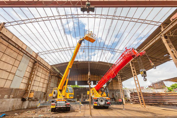 6月29日,在上九片区村级工业园内两台大型机械正在拆除旧的楼宇与厂房。/佛山日报记者王澍摄
