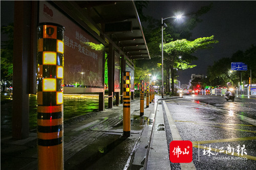 新型示警桩示警效果更明显,而且不容易损坏,如今这种示警桩已经普及到伦教多个地点。/珠江商报记者朱德文摄