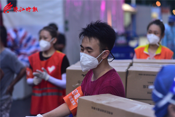 钟浩锦参与物资搬运工作。