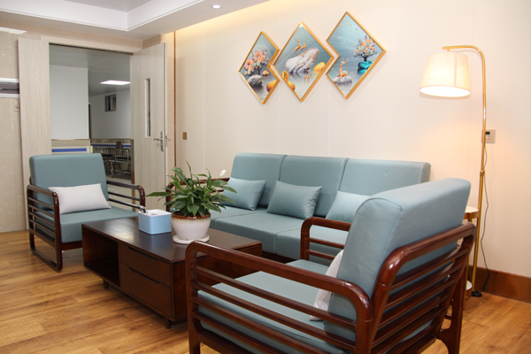 产科新温馨区位于三水区人民医院住院楼九层,占地面积约为1500平方米,分为普通温馨区域和VIP区域。VIP区域的房间均为一房一厅一卫浴的单人单间,房内配备独立冷暖空调、多功能医用床、婴儿床,还贴心准备了独立沙发、电视、冰箱、微波炉,为孕产妇及其家属带来家庭式的自在与舒适。