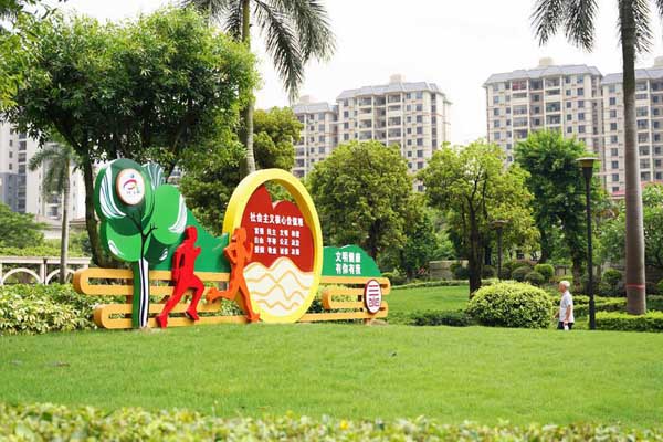 今年,三水区推出创文十五项重点专项工程,公益广告“文明风景线”工程便是其中一项。该工程为更好地彰显本地元素、反映时代精神,以24字社会主义核心价值观为蓝本,将公民道德、健康生活、绿色出行、党史学习教育等方面的内容,精心设计成景观小品。