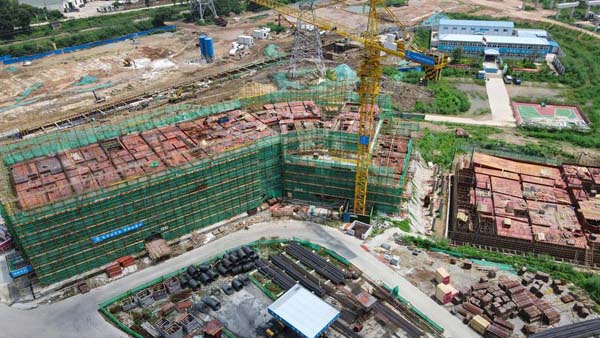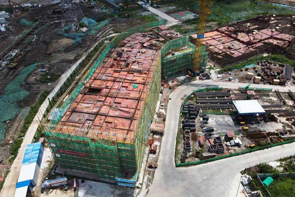 三水区新城医院建设现场,目前已完成主体工程、砌体工程。/佛山日报记者赖基润摄