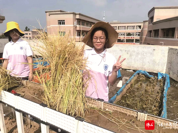 容桂外国语学校生态农场水稻顺利收割