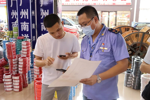 按照相关工作部署要求,8月10日下午,南海区市场监督管理局迅速行动,联合佛山市市场监督管理局质量监管科、大沥镇市场监管所组成突击检查组,在大沥辖区内同步开展“联查联打联治”电线电缆专项整治行动,重点检查电线电缆产品的标签标识、产品名称、执行标准以及进货台账等情况。