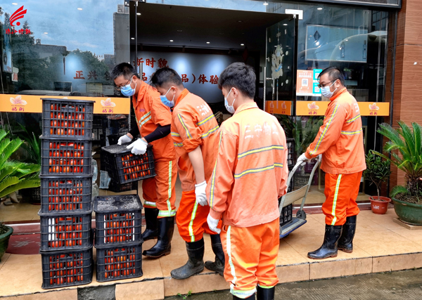 “这些物资非常接地气,西红柿可以在饭堂做菜给职工吃。”三宁物业工会主席陈曦表示,公司里户外作业的职工比较多,物资运送回去后,会派送至一线职工手中。