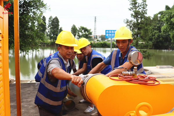 另外,为积极做好防汛排涝工作,检验防汛队伍、机械设备的应急排涝能力,当日下午,九江镇在璜玑大道开展了防汛排涝应急演练。演练模拟汛期强降雨时道路出现大面积积水情况下,镇相关部门迅速出动,安排机械设备(移动机泵)1台,抢险人员20余人,短时间内排除积水,保障道路通畅及安全。此次演练抢险人员反应迅速、操作熟练,机泵排涝能力充足,按照预定方案取得圆满成功。