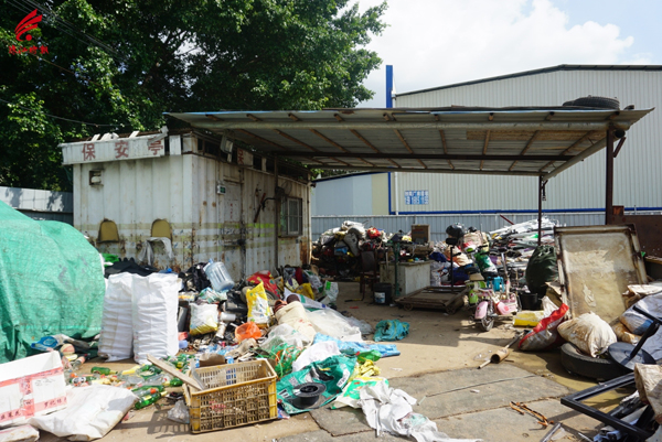 现场废品摆放杂乱,主要存在消防设备不规范、污染环境等问题
