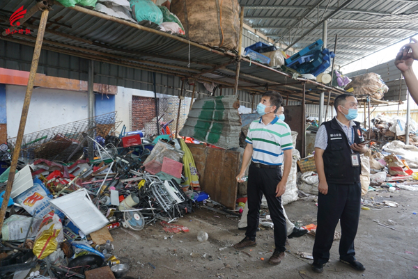 随后在另一家固体废物处理场所内,执法人员在检查中发现其消防器材配备不齐,且存在危险搭建等行为,执法人员立即采取停电措施,责令经营户关停并限期搬迁。