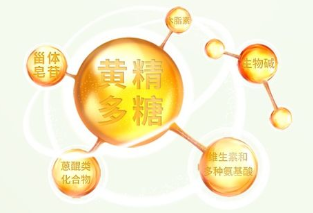 黄精多糖具有广泛的增强免疫、调节血糖、调节血脂、抗氧化、抗衰老、保肝、抗肿瘤和改善记忆等作用;黄精总皂苷具有调节血糖、改善记忆、抗疲劳、抗衰老和调节免疫的作用。