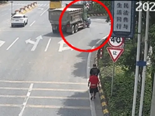 今年5月下旬,陆某驾驶粤E号牌重型自卸货车沿白坭镇黄金大道由西往东方向行驶,当车辆途经黄金大道与白金大道交叉路口时,陆某驾车右转时,由于货车存在视觉盲区,看不到最右侧机动车道中梁某搭载着朱某的二轮摩托车导致双方发生碰撞,造成二人死亡的悲剧。