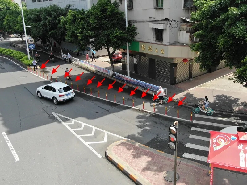 为了进一步完善道路交通安全实施,遏制亡人道路交通事故高发态势,区道安办多措并举开展交通安全整治,其中重要举措之一,路口实施简易非机分离。