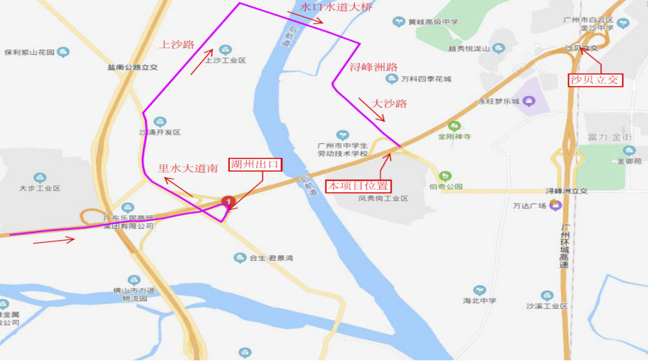 2.往开平方向入口车辆,可绕行大沙路→浔峰洲路→水口水道大桥→上沙路→里水大道南→沙涌收费站上高速。