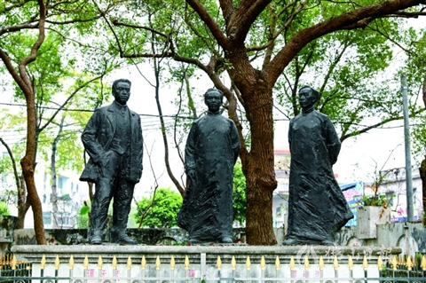 三谭革命事迹展览馆前的“三谭”雕像。/(资料图片)佛山日报记者吕润致摄
